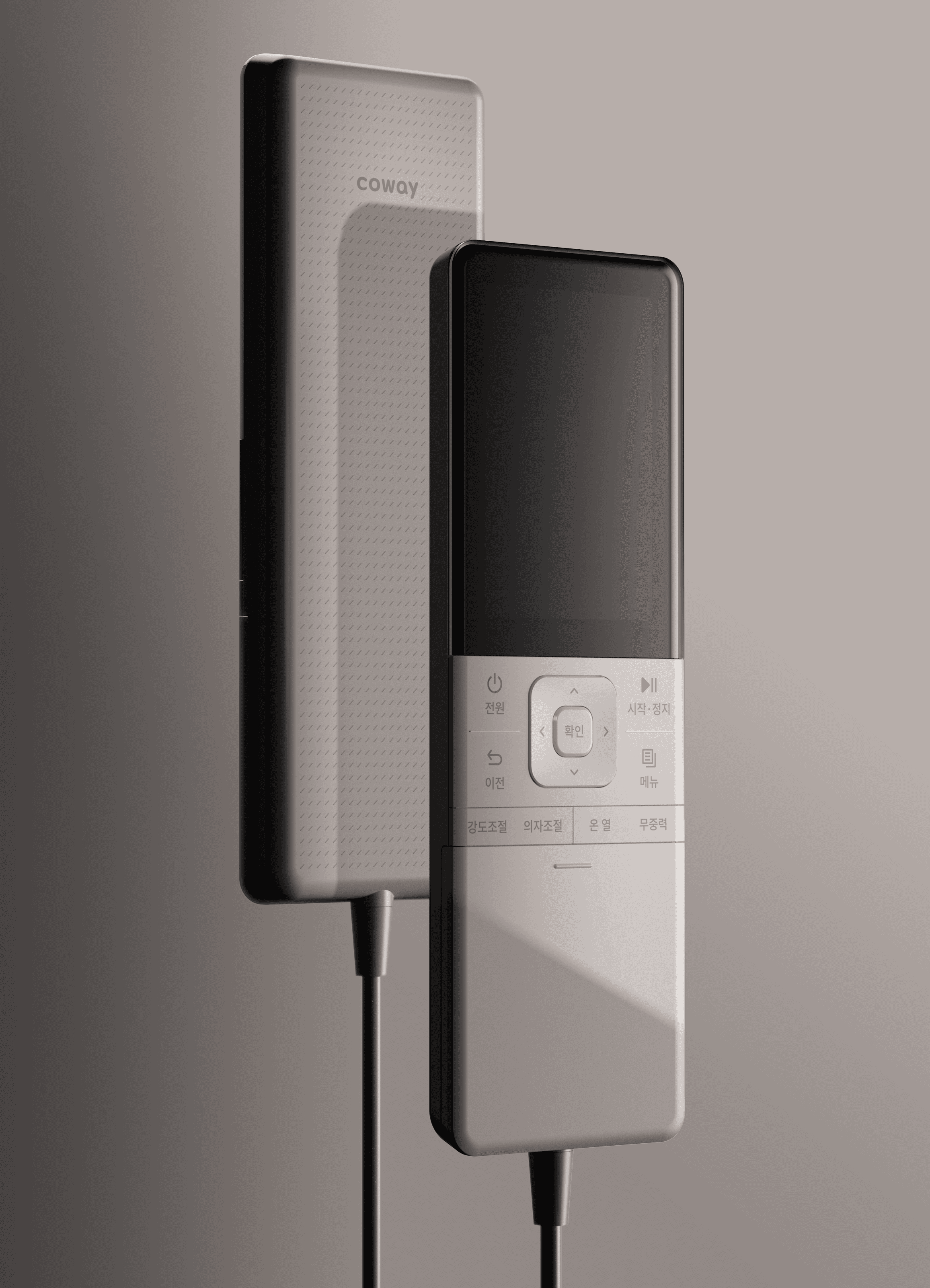 The design streamlines a complex massage-chair remote with a minimal layout that reveals details only when needed.