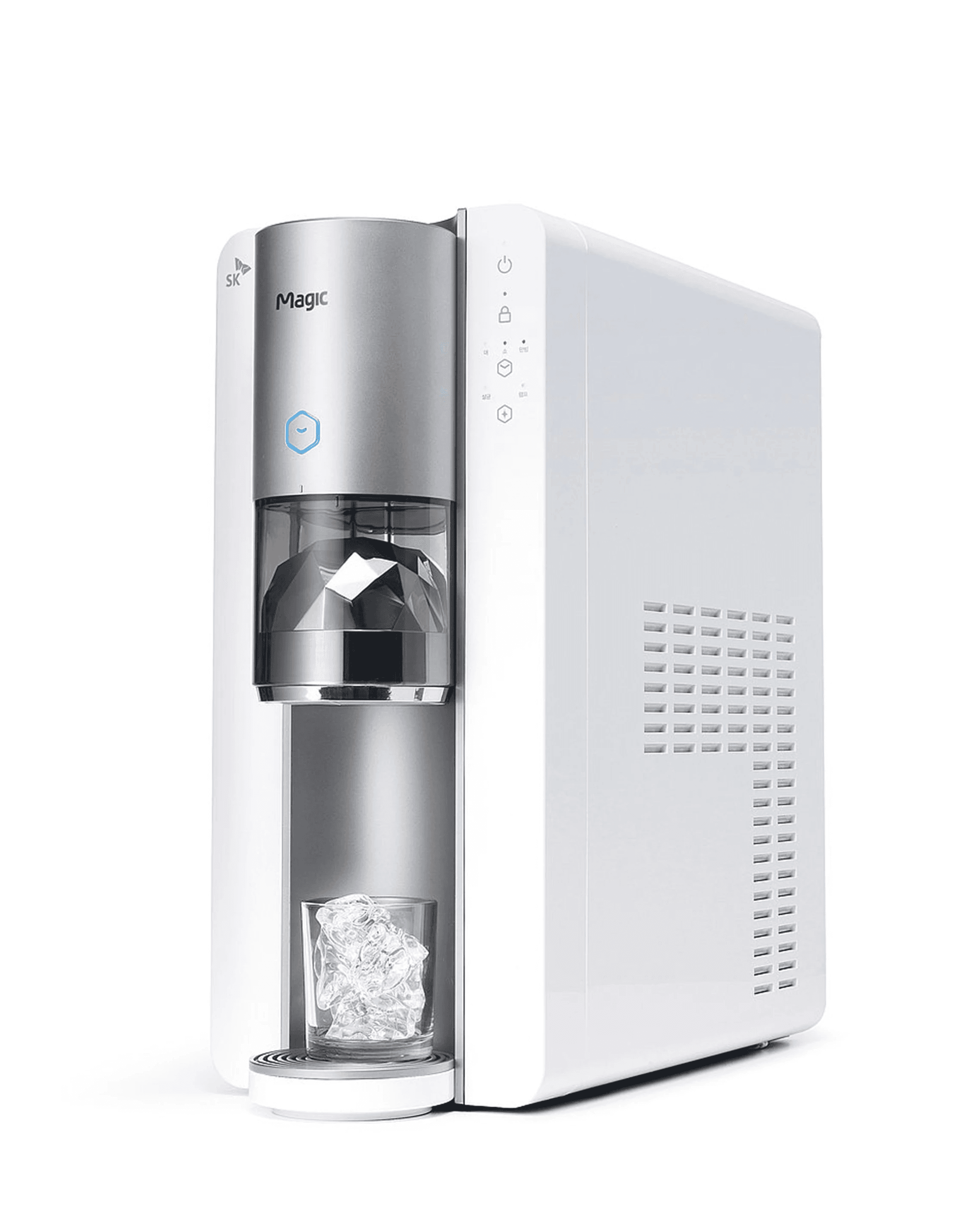 The super-Ice ice dispenser has the unique faucet with the multifaceted form delivering clear ice image.