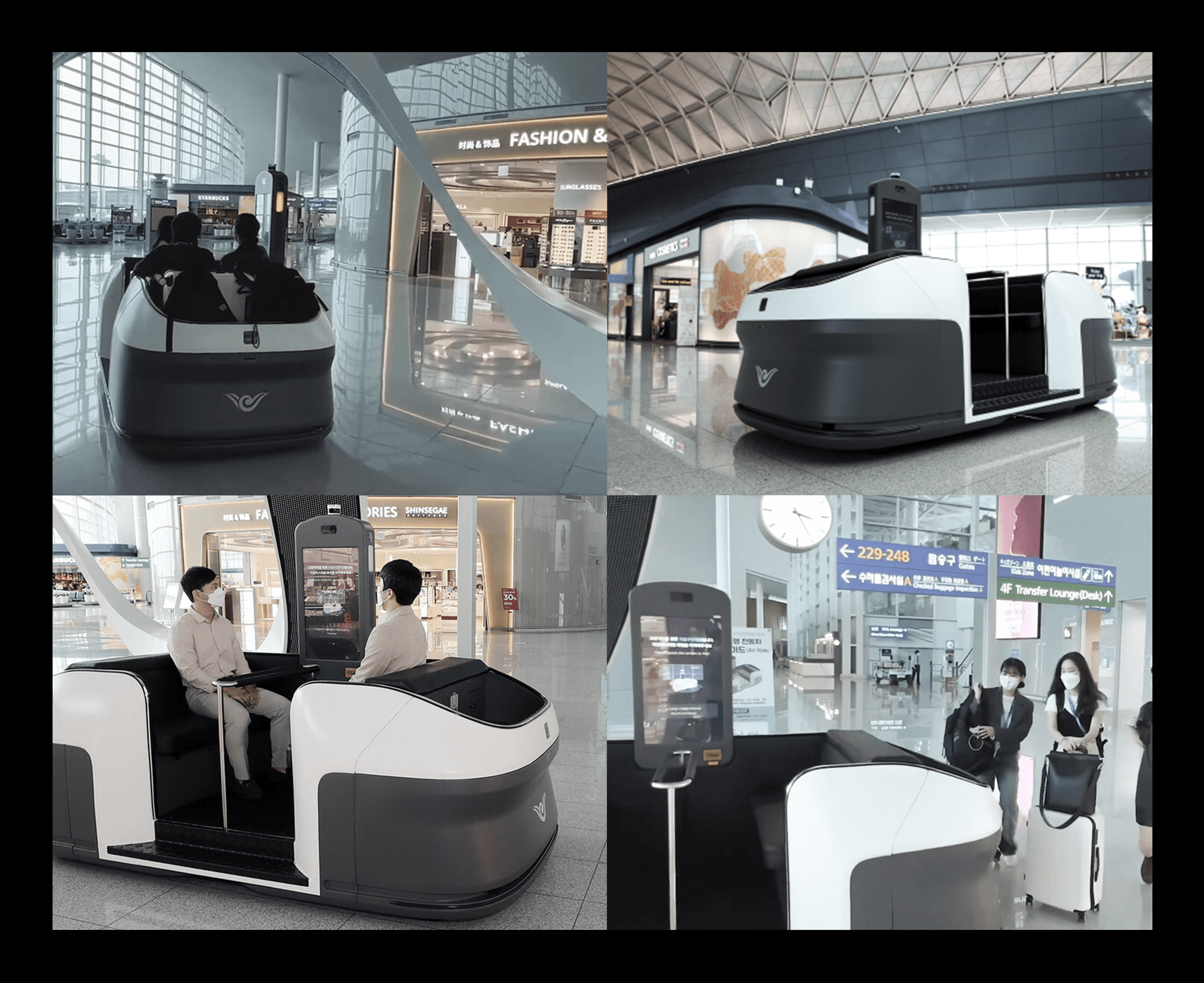 Thordrive, a leader in unmanned autonomous driving technology, has been commissioned to design a project for Incheon Airport Authority. From the information desk to the boarding gate, people with disabilities can get on and off autonomously. Luggage loading and unloading areas are located close to the front and back to minimize the difficulty for passengers. And an unmanned kiosk provides easy access to boarding gate information. The rounded shape reduces the risk of injury in the event of a collision. Incheon International Airport operates one for each building.