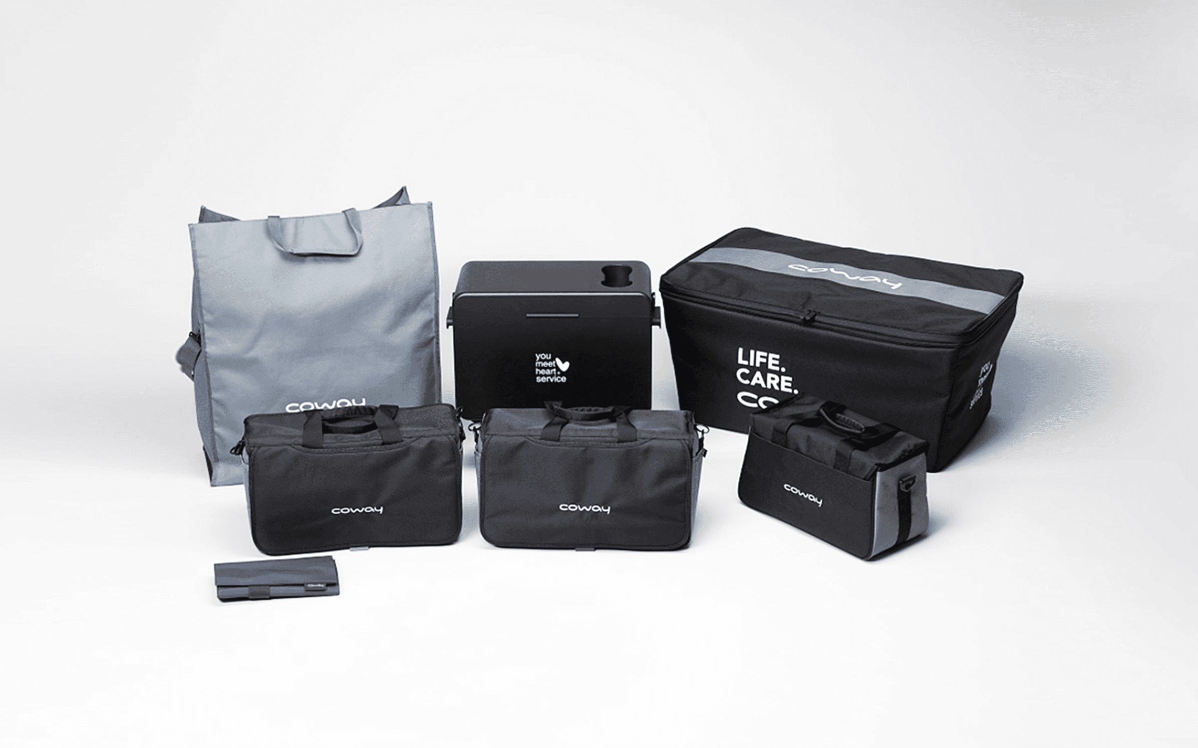 Coway provides ongoing maintenance services for its products, including filtering the product, replacing consumables, cleaning the inside of the product, etc. The professionals responsible for these services are called "cody." The new service tool bag increases work efficiency, reinforces the identity of coders as service professionals, and gives customers the experience and feeling that they are being professionally maintained by experts.