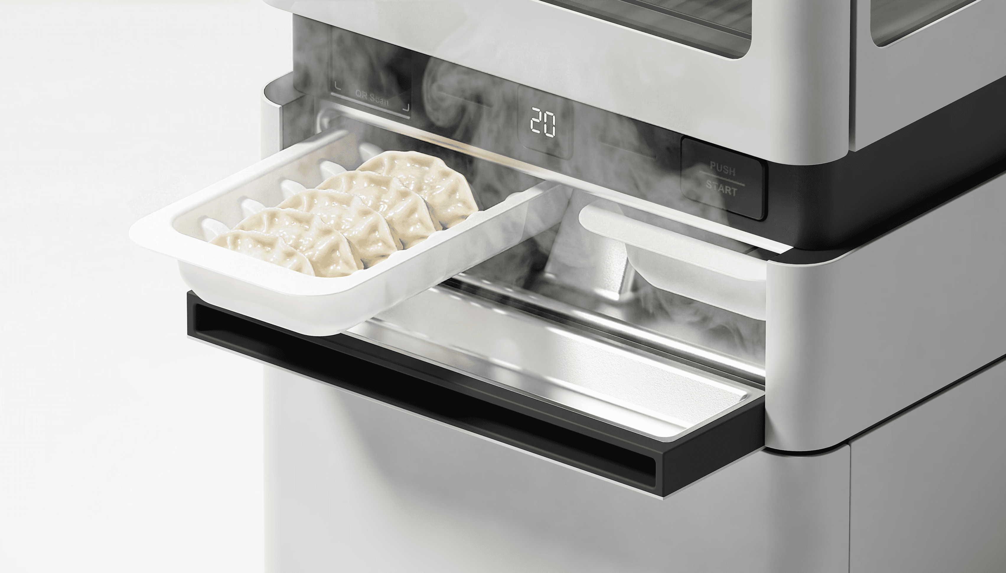 Younger generations in South Korea often eat their meals at convenience stores, and various products and services are being launched accordingly. Services are expanding to serve dumplings warm rather than frozen, and together with BBQ Genesys, a company known for its chicken, we designed a dumpling steamer for convenience stores.