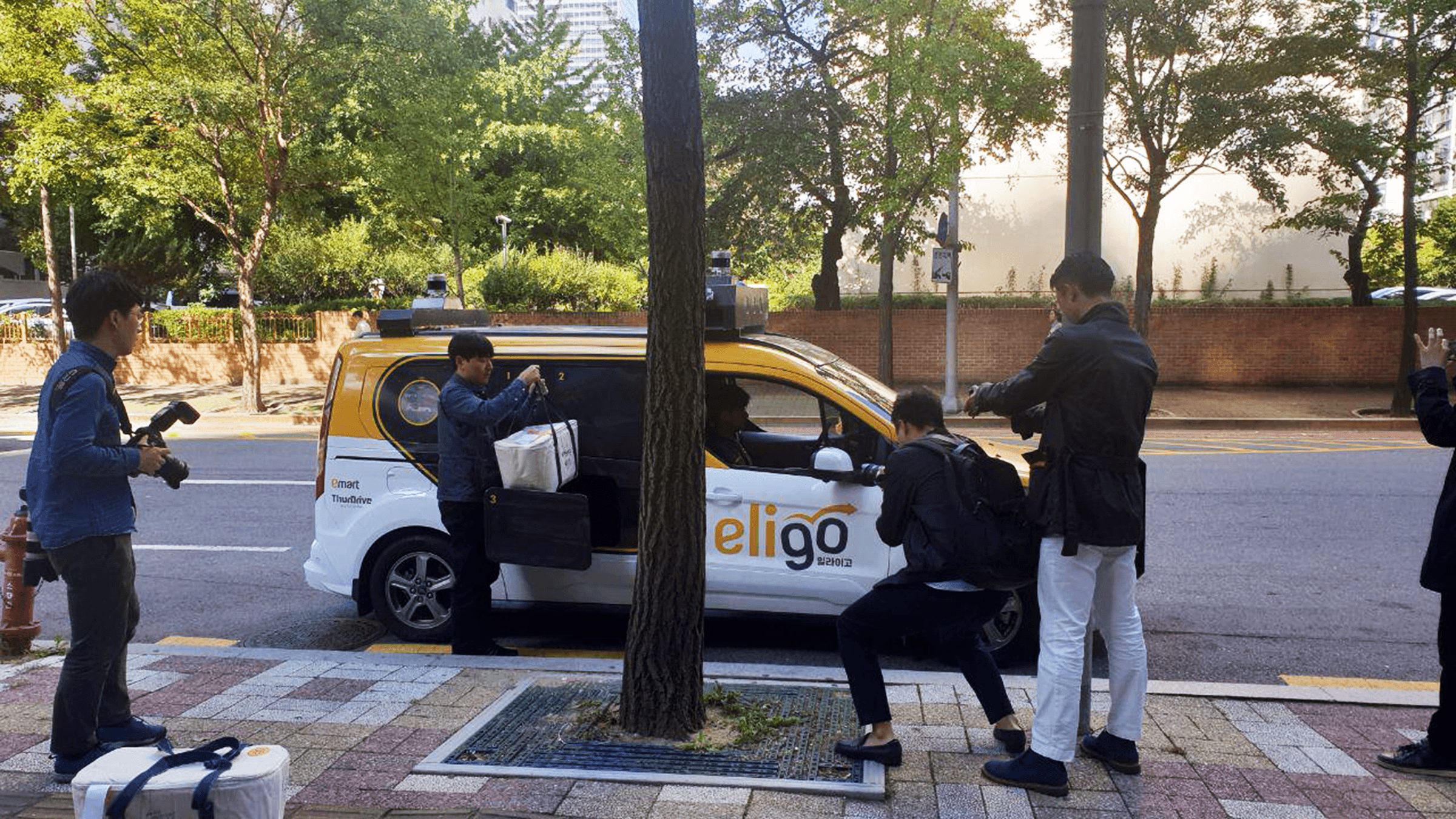 Eli Go is an unmanned autonomous delivery service vehicle that was piloted in the Yeouido area. A sensor rack with a lidar sensor and multiple cameras and a product loading box located on the side have been newly designed. We modified the car and designed the interface to enable unmanned, autonomous delivery and allow users to retrieve their ordered items by themselves. For the actual implementation, we disassembled the interior of the car, cut out the body, and even fabricated the doors.