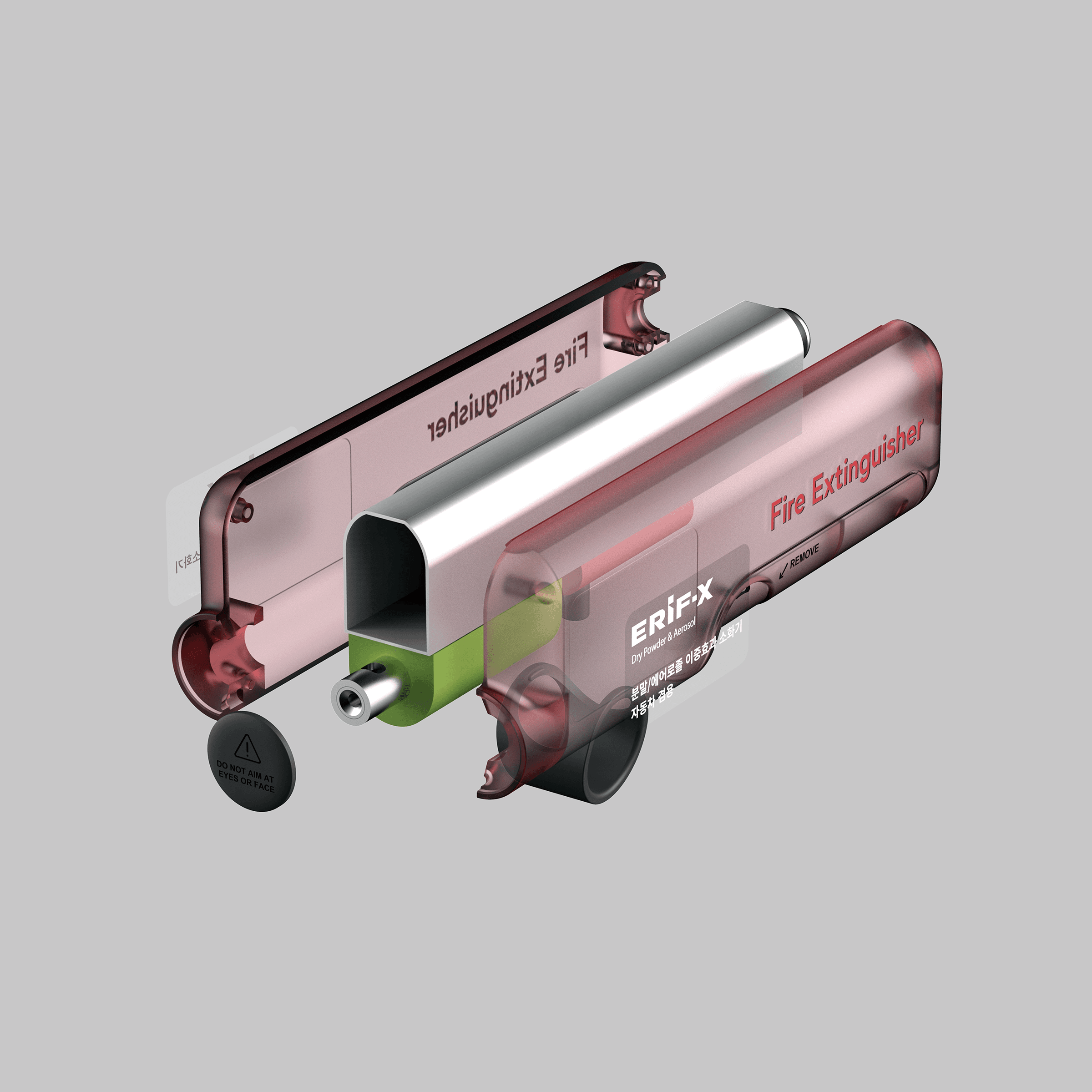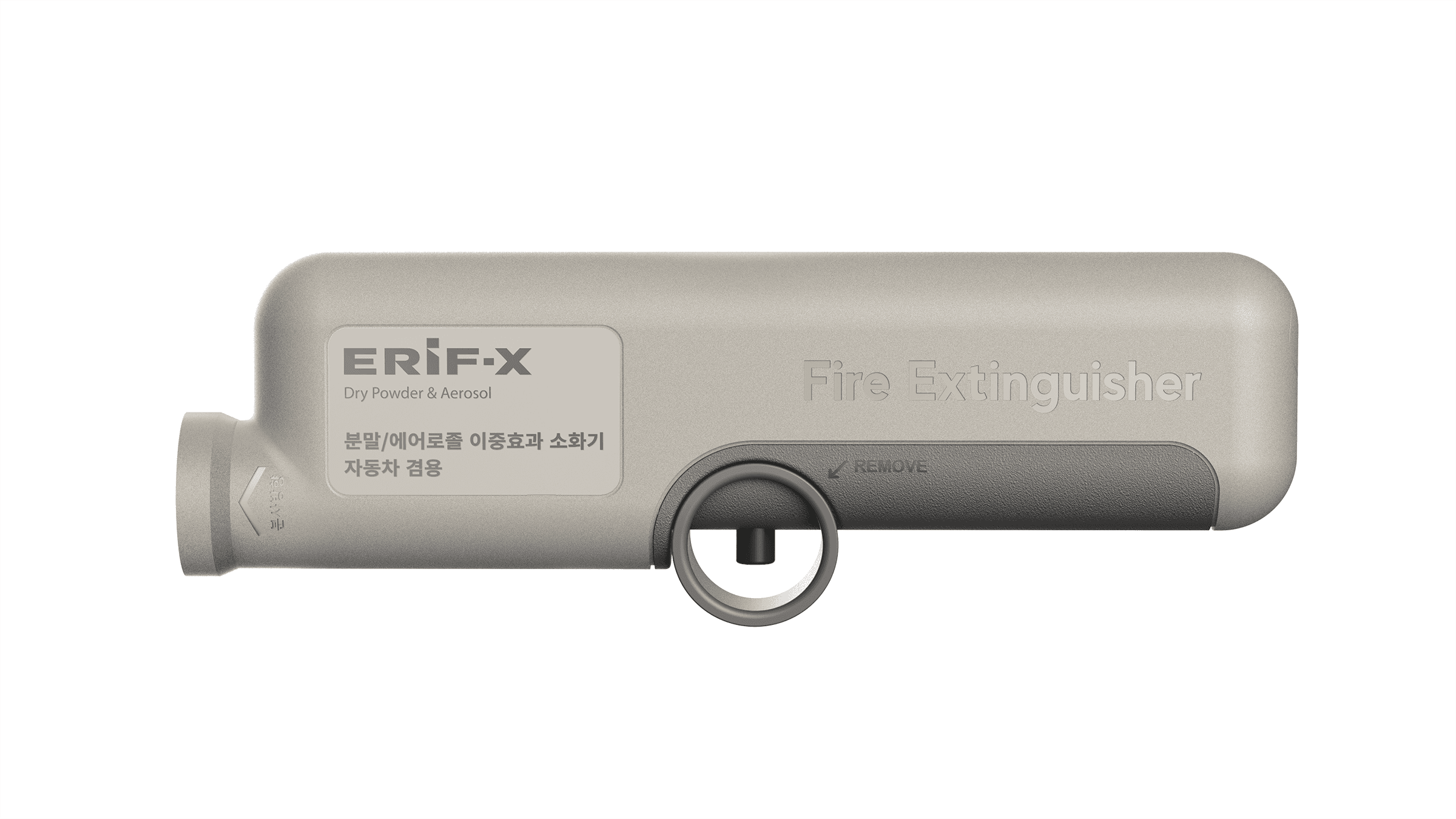 With the revision of automobile laws, all cars must be equipped with a fire extinguisher. Samwoosangi, the No. 1 fire extinguisher manufacturer in Korea, has developed a compact fire extinguisher using solid aerosol that can be easily stored in a car's glove compartment. The redesign departs from the structure of a typical fire extinguisher and prioritizes speed and safety in actual use.
