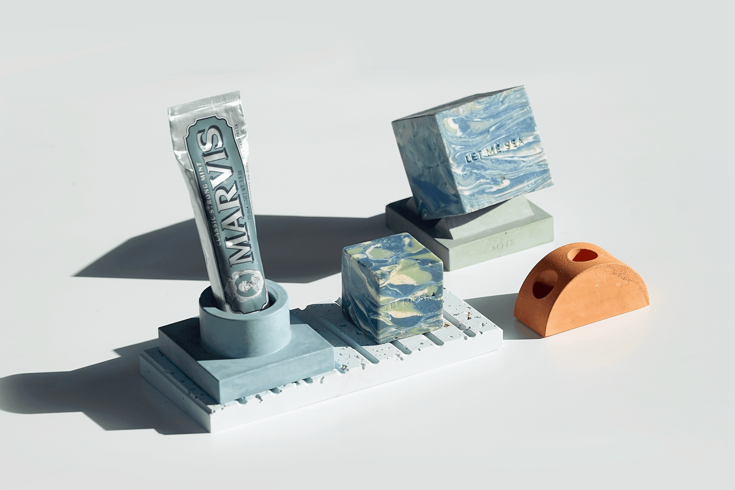 MOTE, a company that produces high-end soaps, sponsored KIDP to develop a product that matches their soaps. We designed several items for Mote soaps and the surrounding environment using concrete as the main material, taking into account the dignified environment in which they are used.