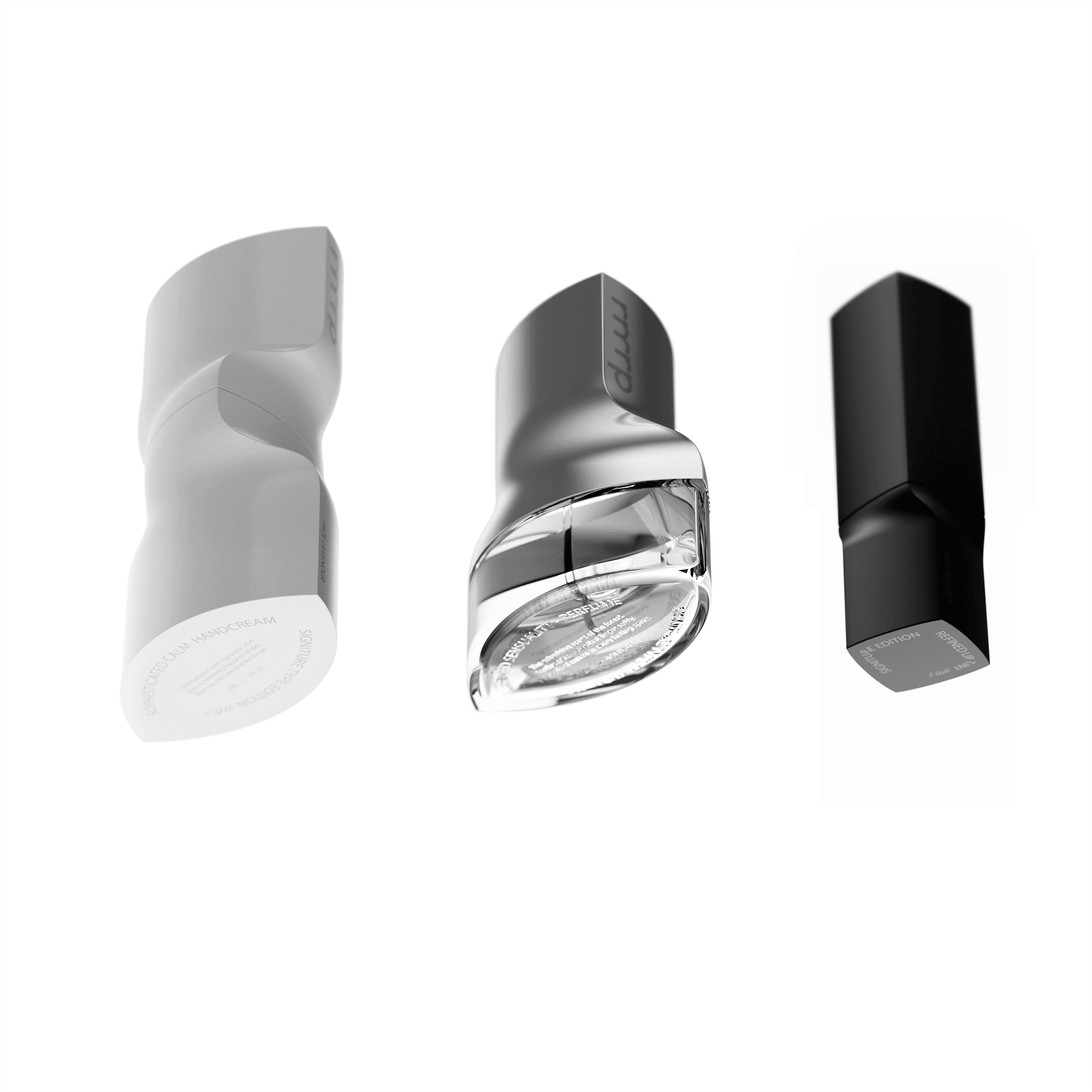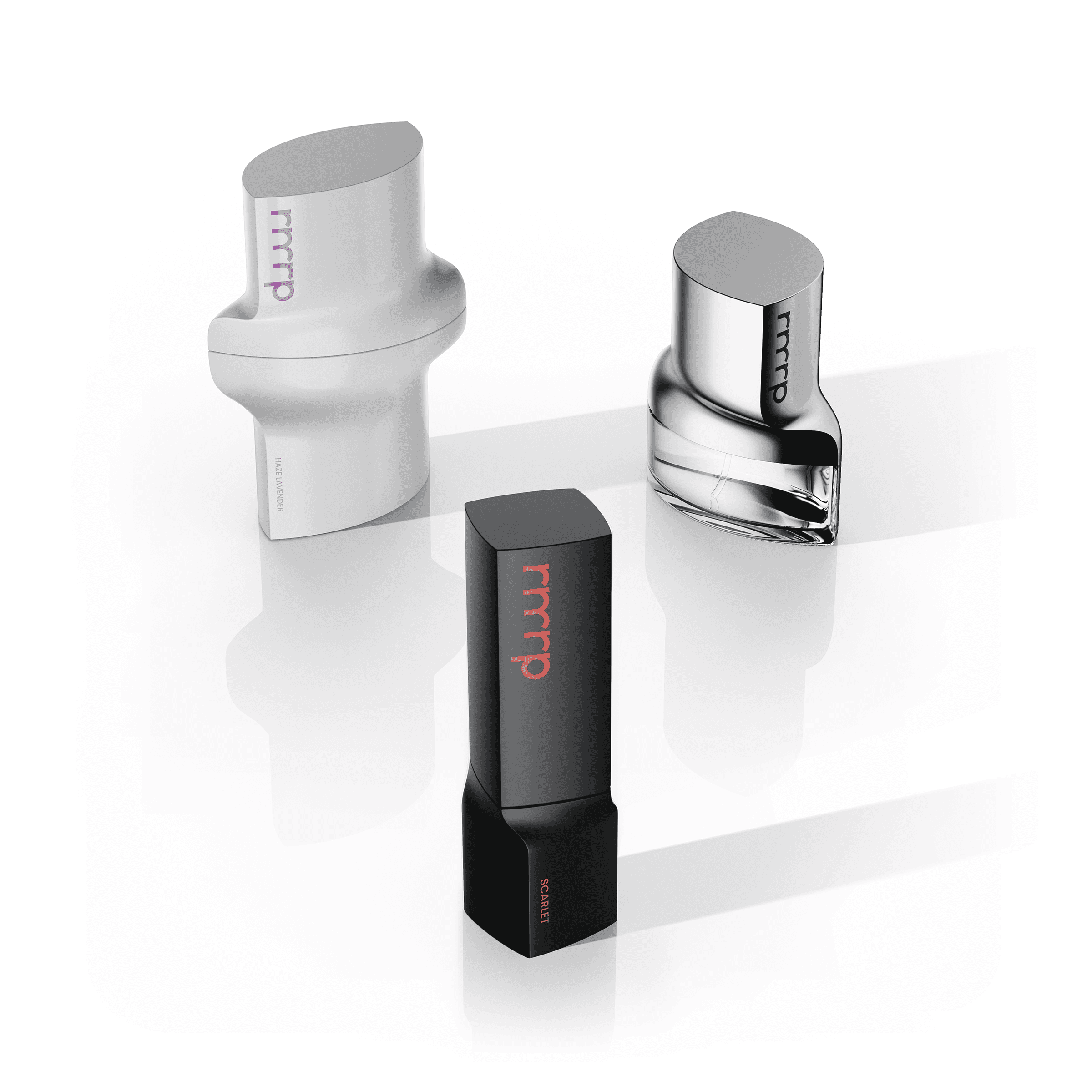 rmrp Cosmetics The new rmrp Beauty line delivers a sensorial experience beyond function through a smooth design flow. Just like textures that seep into the skin, fragrances that spread through the air, and colors that naturally seep into the lips, each product’s surface has a unique, sculptural beauty that changes. The surfaces capture and reflect light in unique ways, creating different sensations from every angle. Each of the three products has its own unique characteristics, yet they are perfectly connected through a unified design language. rmrp Perfume Elegant through sophisticated forms that reflect the way fragrances spread through the air. rmrp Hand Cream With a design that perfectly integrates form and function, the sculpted curves are designed to fit intuitively in the hand, providing a natural grip. rmrp Lipstick The shape flows smoothly and continuously, as if the color naturally seeps into the lips. A design that coexists with boldness and delicacy, capturing the essence of the color itself.