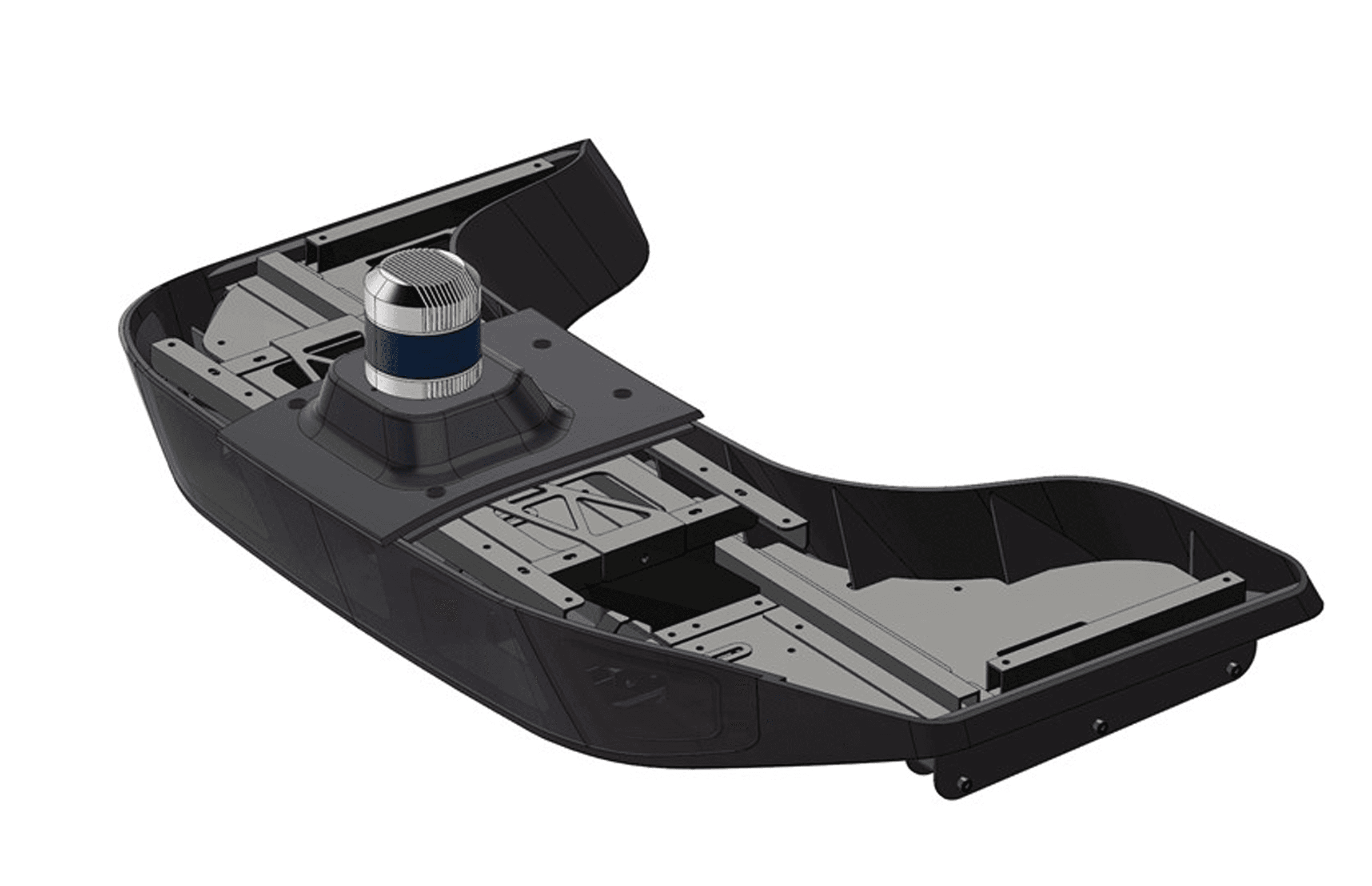 After the launch of the self-driving delivery vehicle, we proceeded with the design of the sensor rack and its structural design. The binding locations and all the functional connection holes had already been created in the car during our previous work, so we had to consider including these details. The final design was showcased at the 2020 CES show.