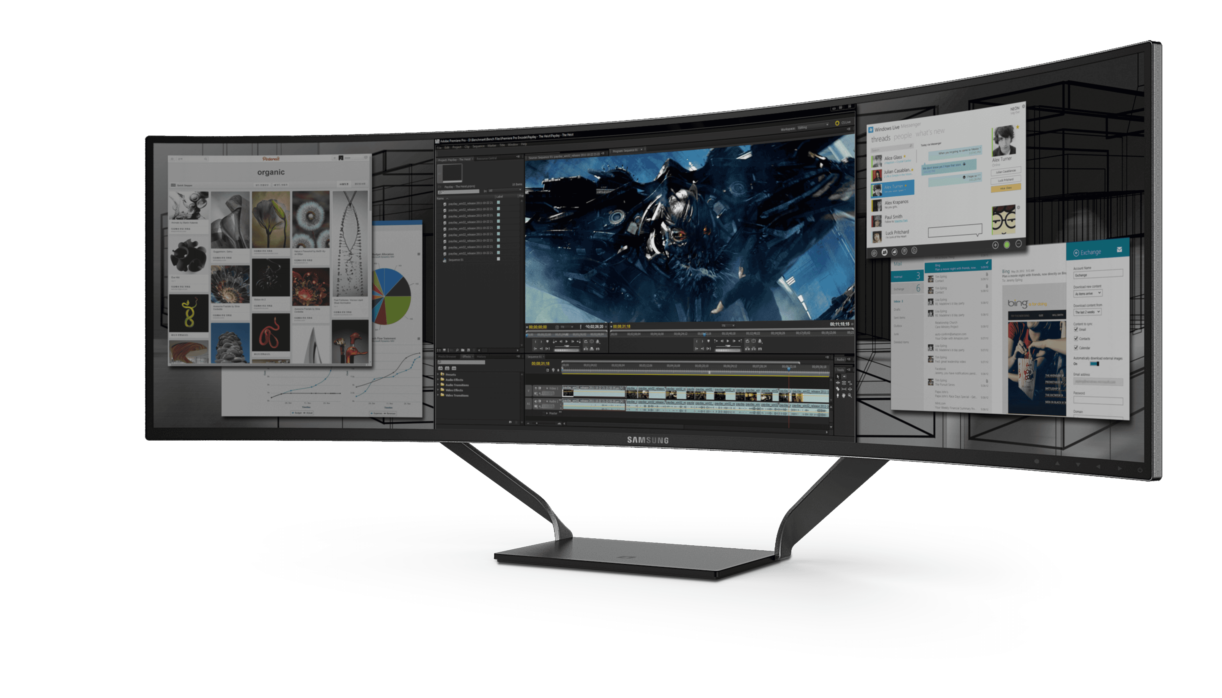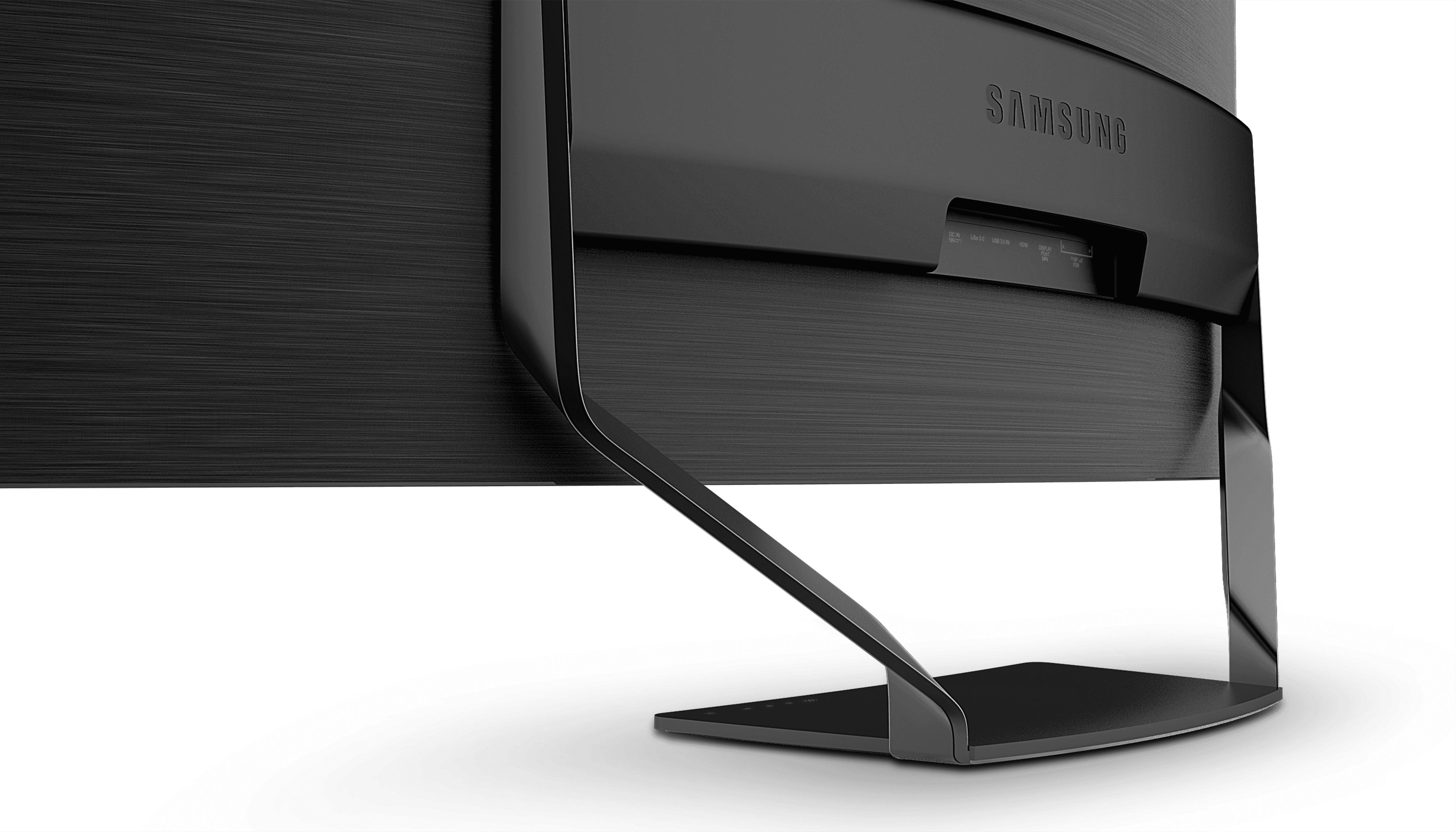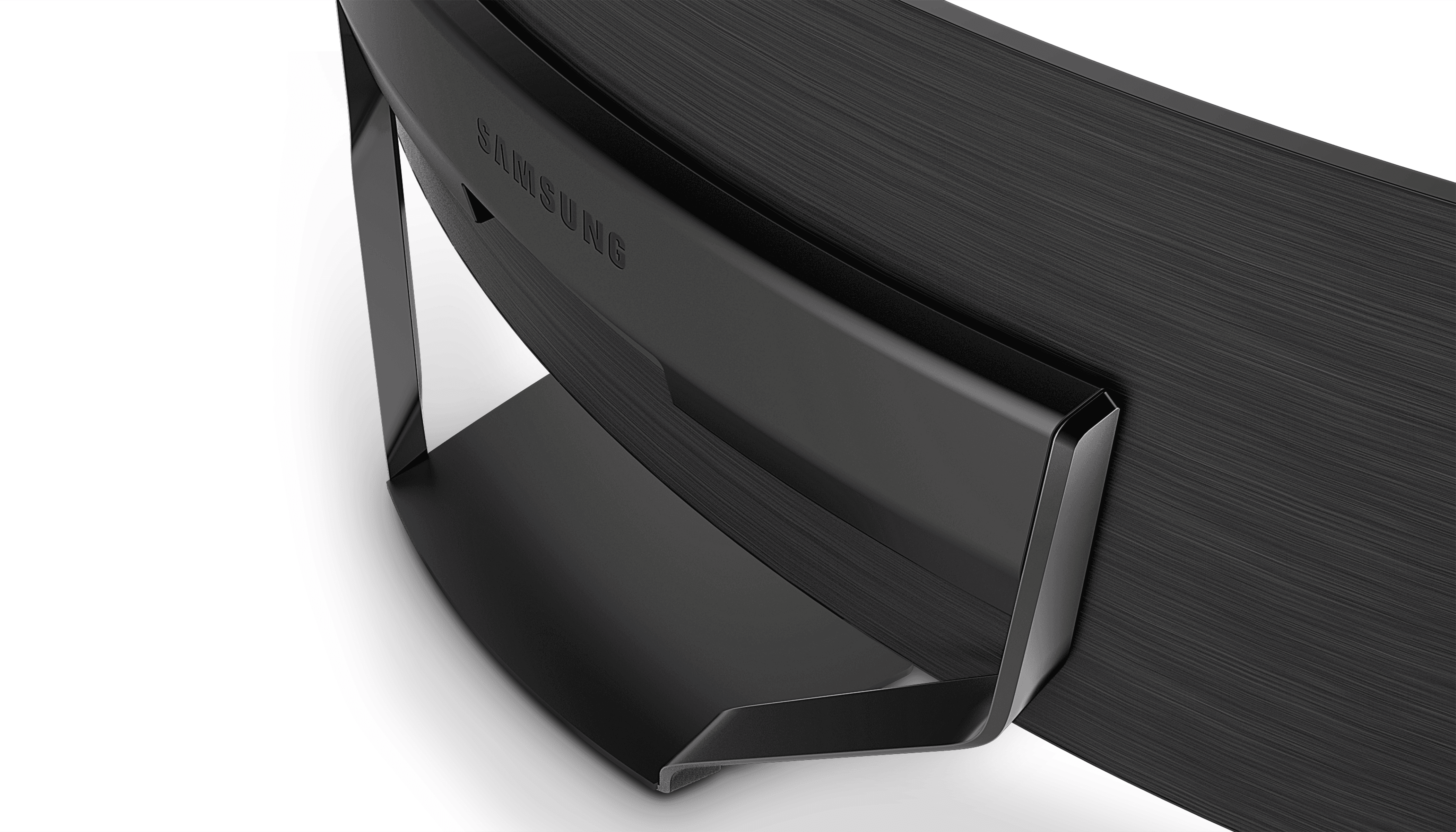 Ideal for smart offices, high-curvature (1000R) monitors offer the advantage of maintaining a nearly constant distance between the screen and your eyes, even when sitting or turning your head. However, due to their wide width and depth, a stable stand design was crucial. The metal plate folds at a constant angle to maintain stability and allow for height adjustment, while the stand base features wireless charging, creating a neat and tidy environment.