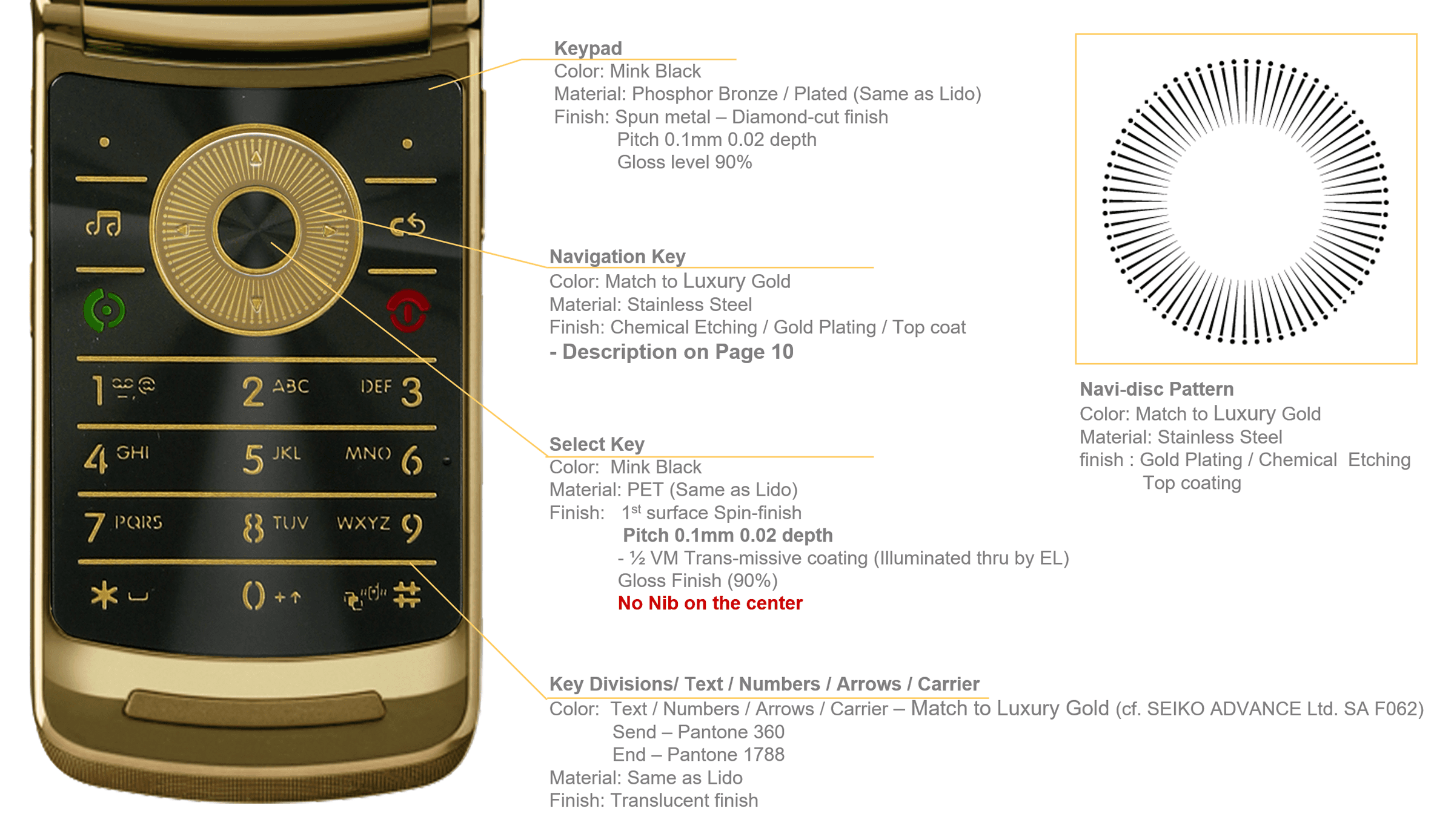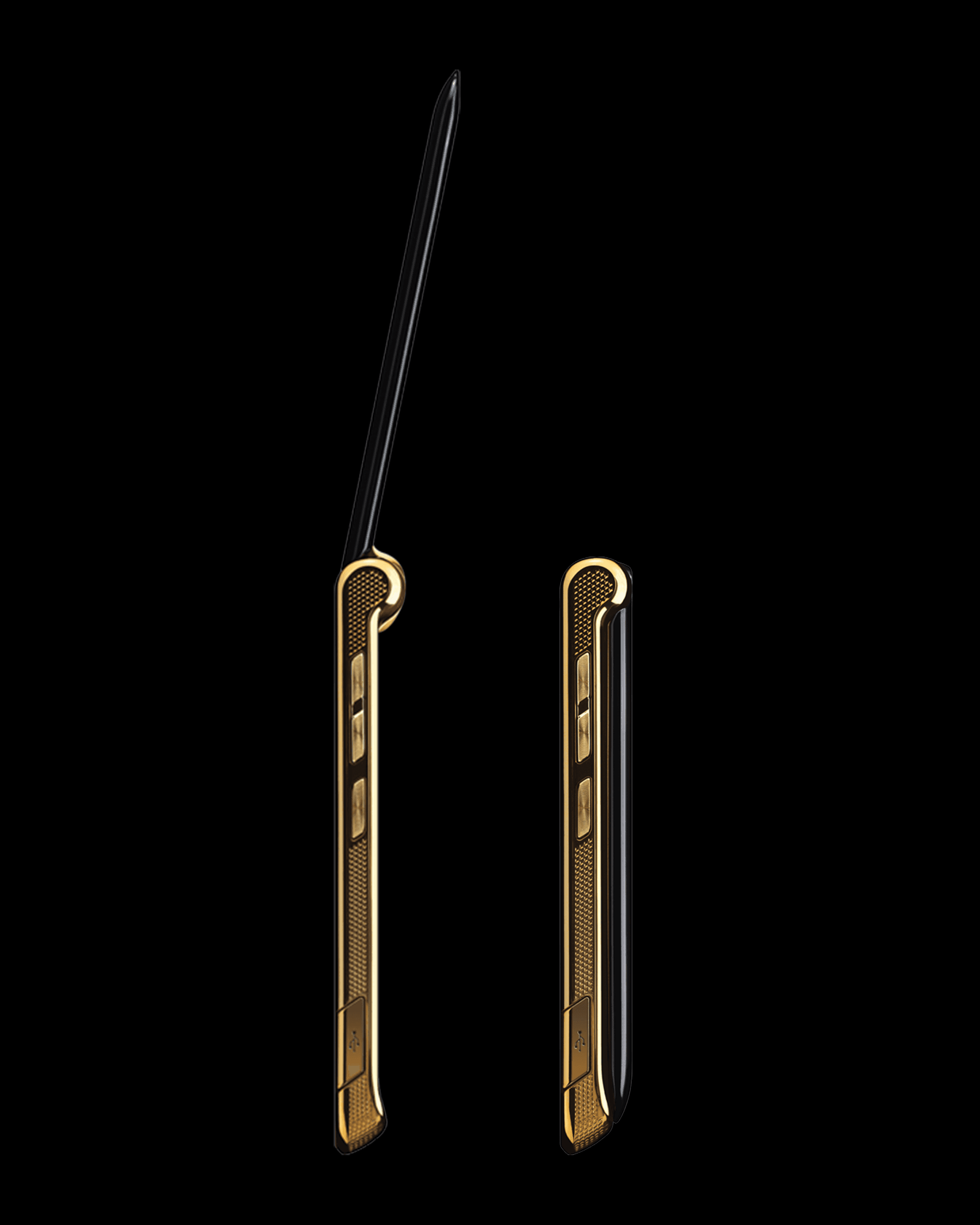 The shell’s seamless edges and the product name are both inspired by the look and feel of smooth river rocks. The cover slides outward before unfolding – to keep the hinge flush with the outer form of the phone – revealing vacuum-metallized interior surfaces. Two embedded magnets ensure a firm and satisfying closure.