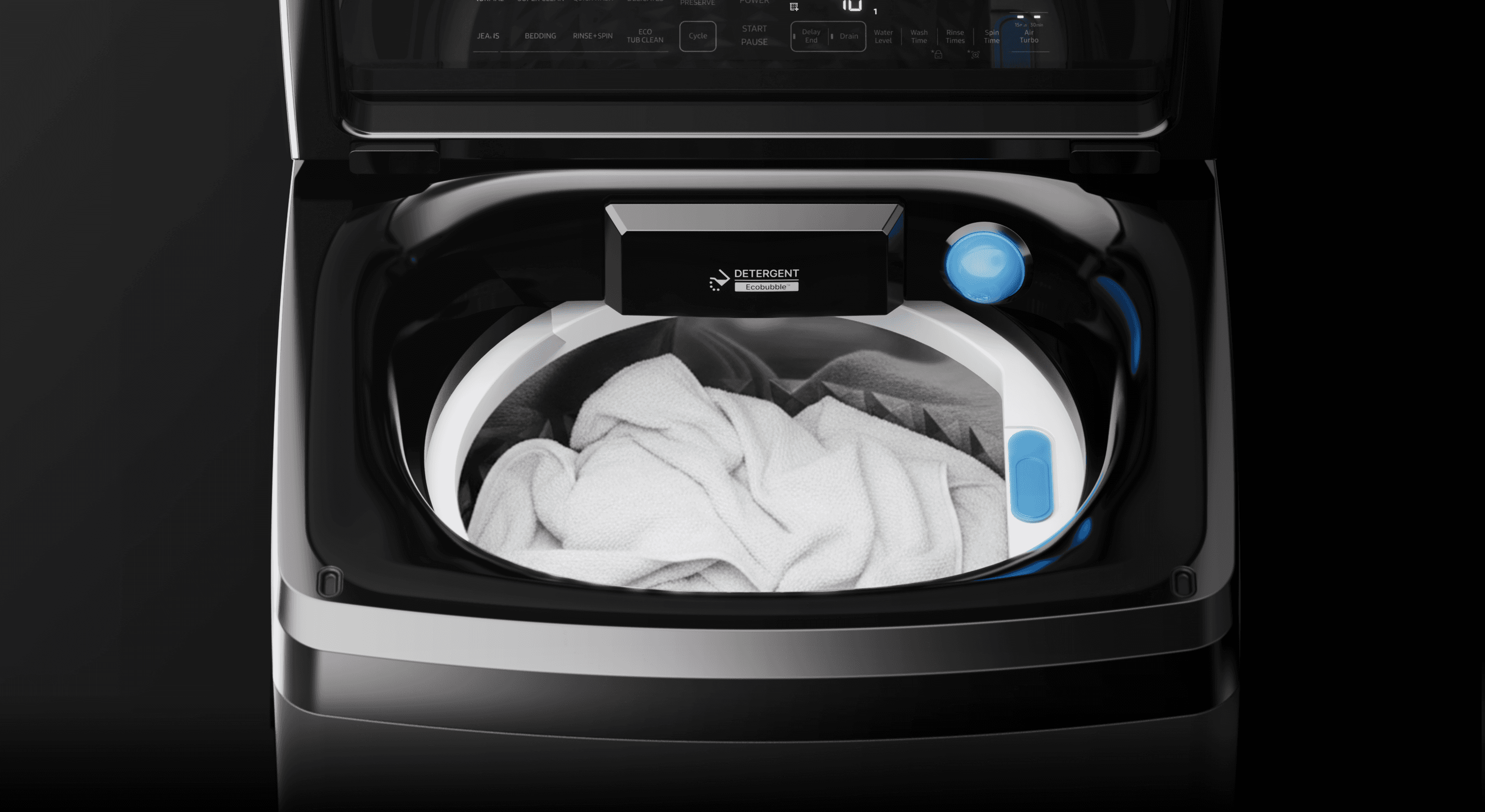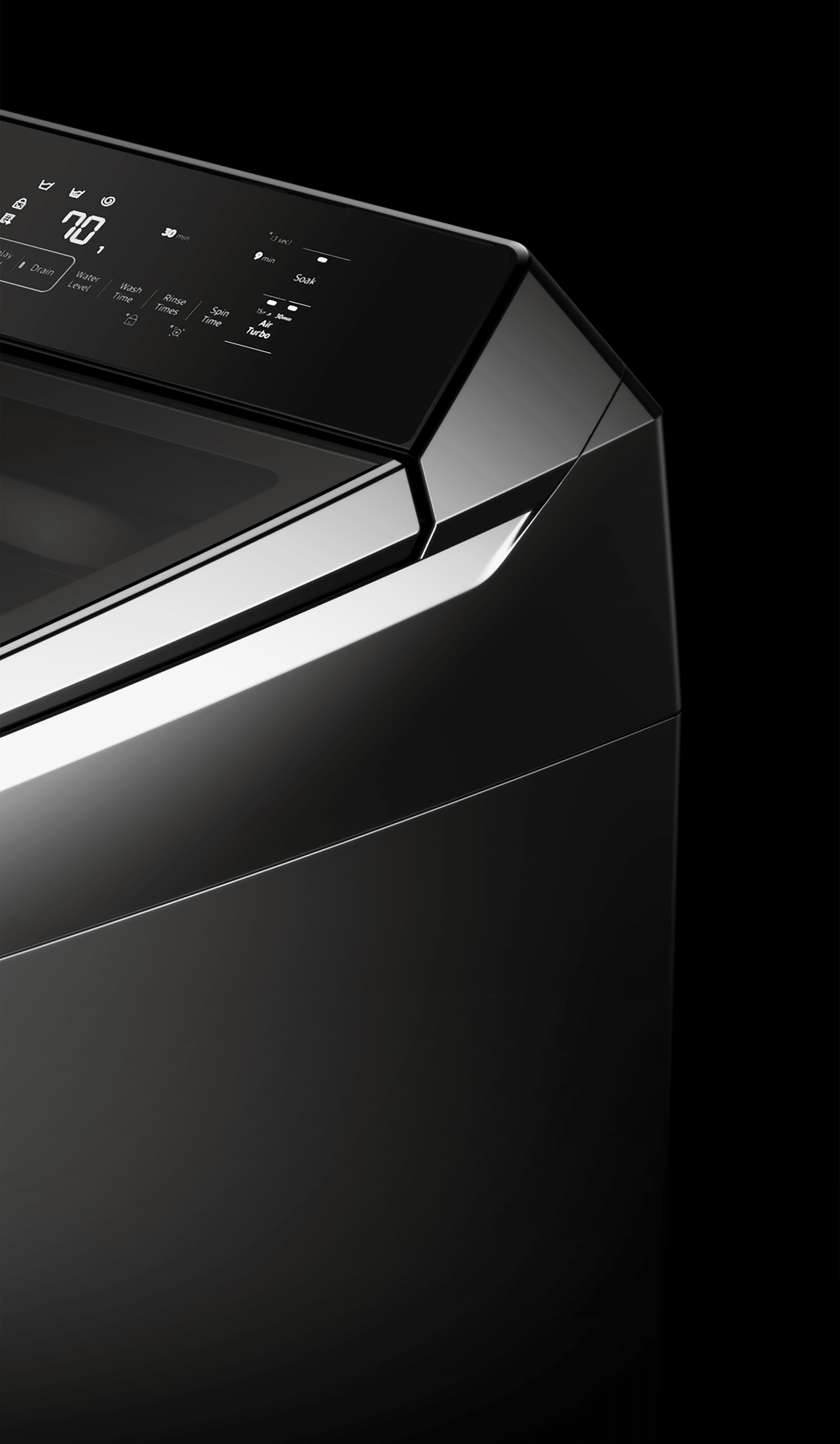 Top-loading washing machines were considered old technology and the design was losing its individuality. We designed a more modern and unique design to show that top-loading washing machines are still a viable option. It was also designed to reflect three sizes of washing machines in one design language.